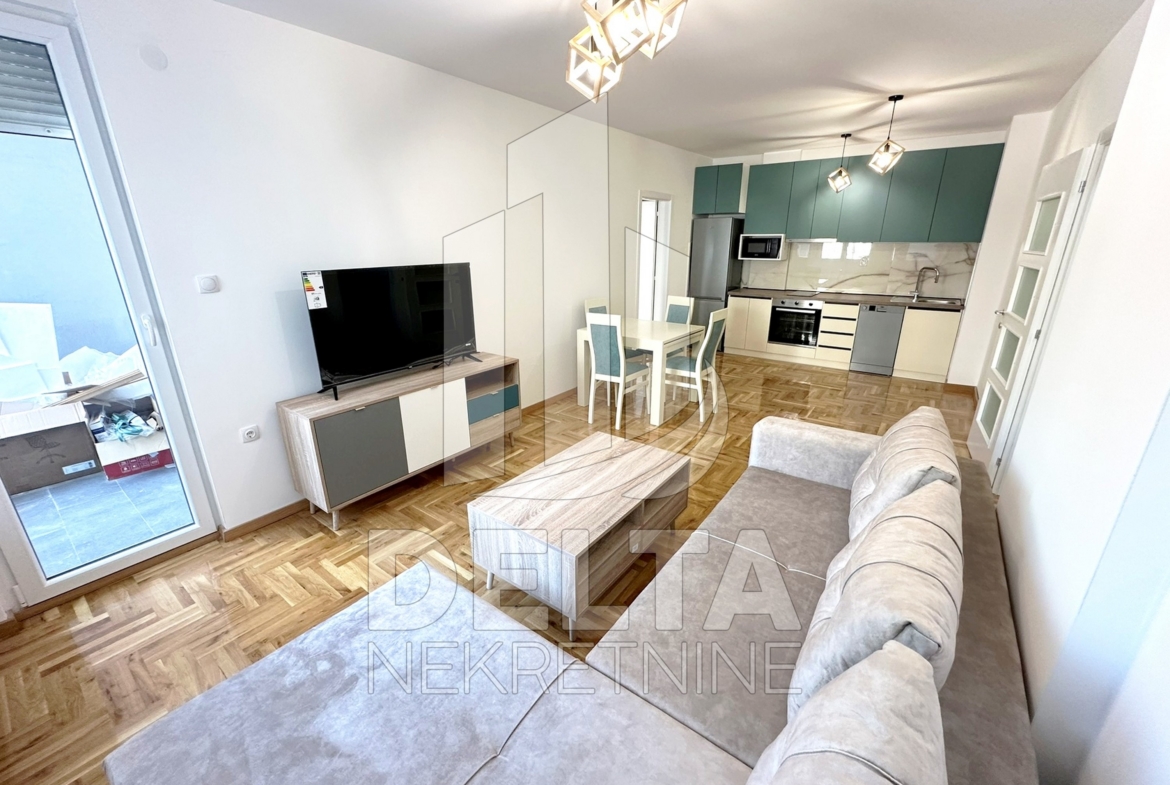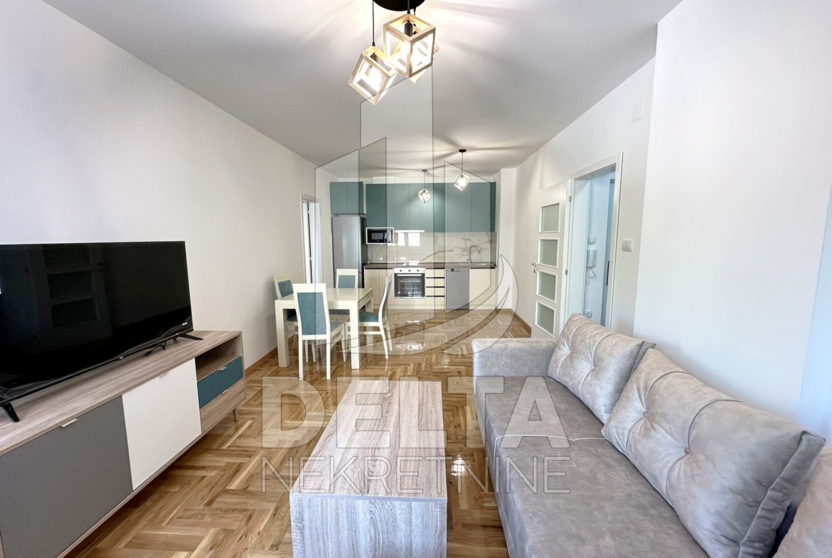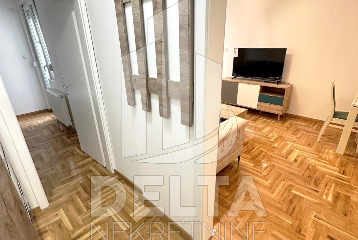 U ponudi za iznajmljivanje je komforan, dvoiposoban stan u centru grada, u neposrednoj blizini Crvenog pevca. Nalazi se u savremenoj stambenoj zgradi kvalitetne, nove gradnje. Zgrada je sa liftom, video nadzorom, a stan se nalazi na prvom spratu. Dvoiposoban po strukturi, površine 79 m2, stan ima jako lep raspored prostorija koji pruža odličnu funkcionalnost. Sastoji se od ulaznog hodnika, velikog dnevnog boravka sa trpezarijom, kuhinje, dve spavaće sobe, kupatila, i prostrane terase. Kompletno je namešten, opremljen novim električnim uređajima i nameštajem. Zakupcu će na raspolaganju biti i sopstveno parking mesto u podzemnoj garaži. U stanu je grejanje centralno. Lokacija zgrade je takva da su u neposrednom okruženju dostupni različiti objekti koji su od značaja za svakodnevni život, tu su brojni maloprodajni objekti, supermarket, ugostiteljski objekti, autobusko stajalište gradskog prevoza, osnovna škola, obdanište… sve što može doprineti lagodnom načinu života i olakšati svakodnevnicu. Centar grada se nalazi na nekoliko minuta hoda, kao i park Čair.