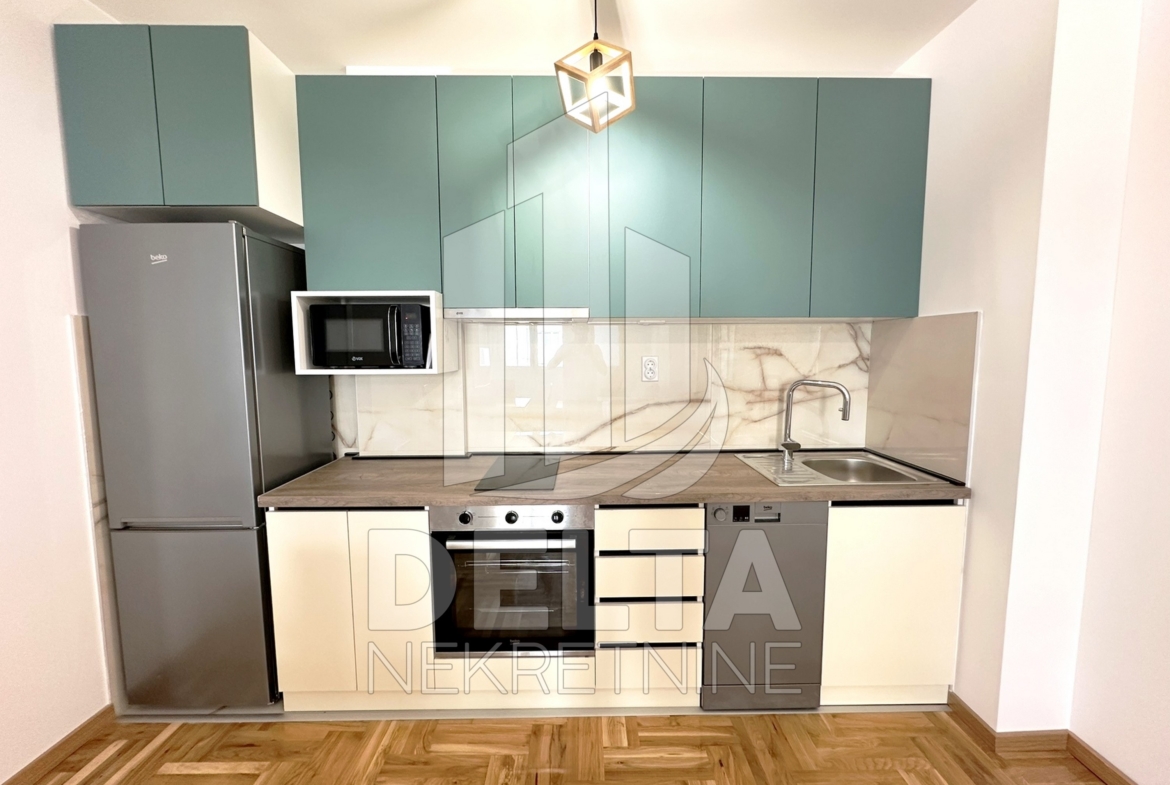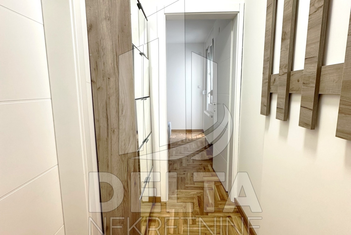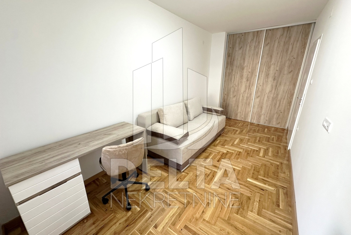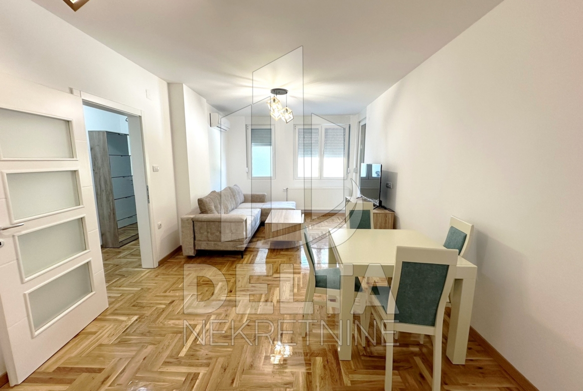 U ponudi za iznajmljivanje je komforan, dvoiposoban stan u centru grada, u neposrednoj blizini Crvenog pevca. Nalazi se u savremenoj stambenoj zgradi kvalitetne, nove gradnje. Zgrada je sa liftom, video nadzorom, a stan se nalazi na prvom spratu. Dvoiposoban po strukturi, površine 79 m2, stan ima jako lep raspored prostorija koji pruža odličnu funkcionalnost. Sastoji se od ulaznog hodnika, velikog dnevnog boravka sa trpezarijom, kuhinje, dve spavaće sobe, kupatila, i prostrane terase. Kompletno je namešten, opremljen novim električnim uređajima i nameštajem. Zakupcu će na raspolaganju biti i sopstveno parking mesto u podzemnoj garaži. U stanu je grejanje centralno. Lokacija zgrade je takva da su u neposrednom okruženju dostupni različiti objekti koji su od značaja za svakodnevni život, tu su brojni maloprodajni objekti, supermarket, ugostiteljski objekti, autobusko stajalište gradskog prevoza, osnovna škola, obdanište… sve što može doprineti lagodnom načinu života i olakšati svakodnevnicu. Centar grada se nalazi na nekoliko minuta hoda, kao i park Čair.