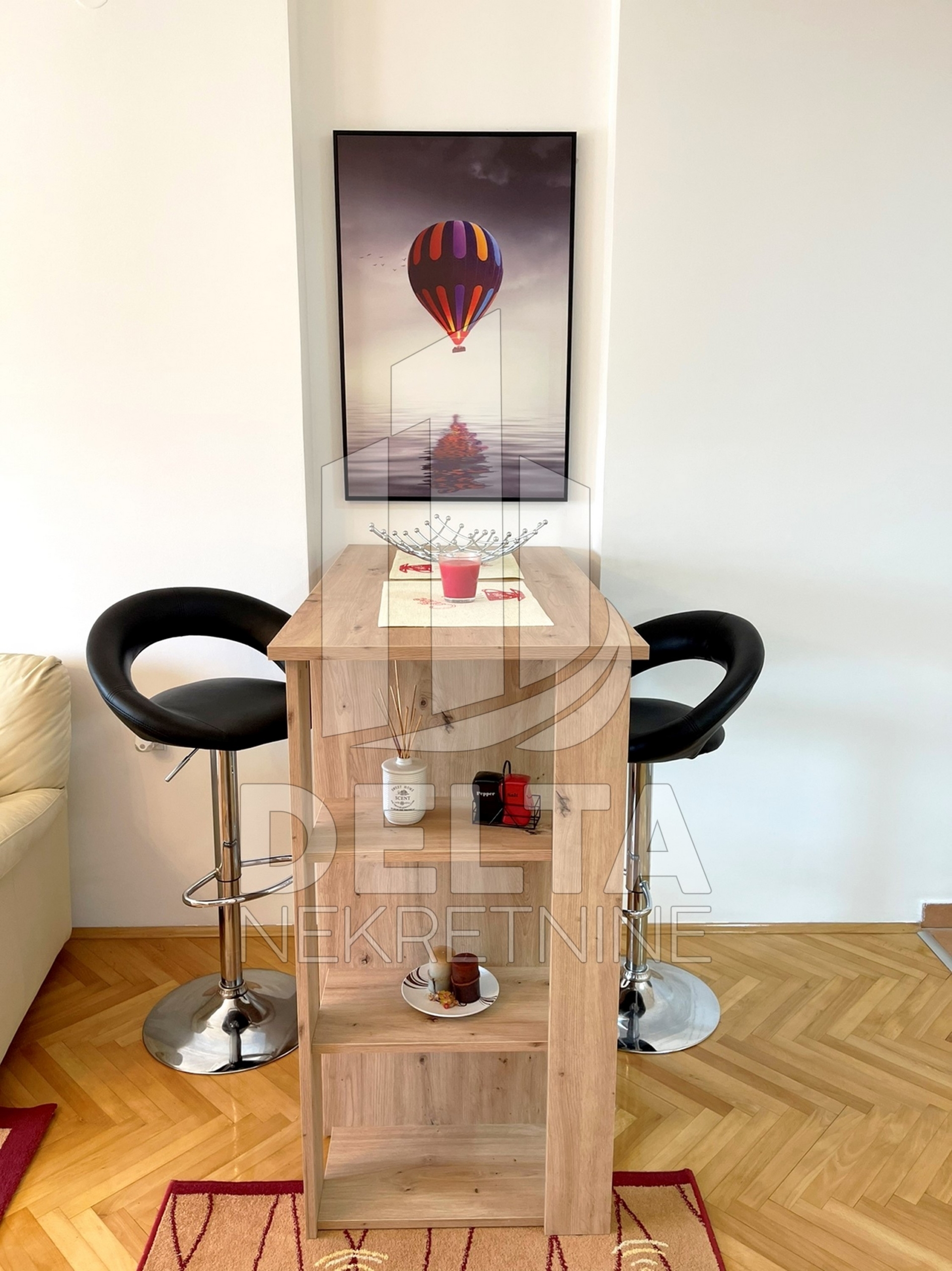 U ponudi za iznajmljivanje je izuzetno funkcionalan i moderno uređen jednoiposoban stan, idealno pozicioniran u samom centru grada, u neposrednoj blizini Osnovnog suda i Filozofskog fakulteta. Nalazi se na četvrtom spratu stambene zgrade novije gradnje, sa liftom. Stan ima površinu od 53 m² i odlikuje se odličnom strukturom i maksimalno iskorišćenim prostorom. Sastoji se od ulaznog hodnika, prostranog dnevnog boravka sa trpezarijom i kuhinjom, spavaće sobe, ostave, kupatila i terase. Stan je izuzetno komforan, kompletno opremljen novim nameštajem i električnim uređajima, te je odmah useljiv bez dodatnih ulaganja. Enterijer je skladno uređen, sa posebnim akcentom na funkcionalnost i prijatan ambijent. Grejanje u stanu je centralno.